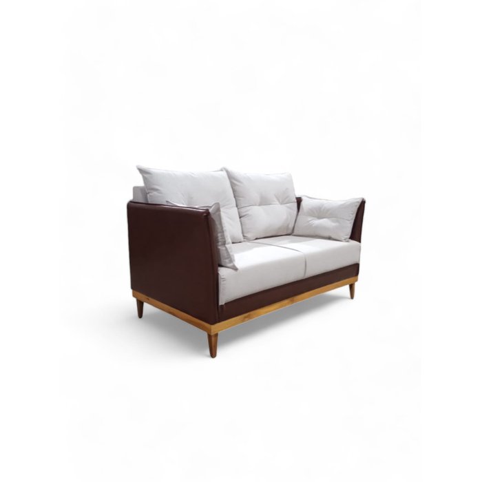 Sofá Londres 2 Lugares LInho M01 Com Couro Ecológico Nozes