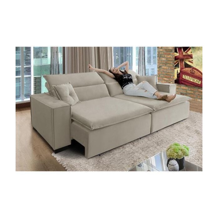 Sofá Londres 3.00m Retrátil e Reclinável Pillow Top - Bege