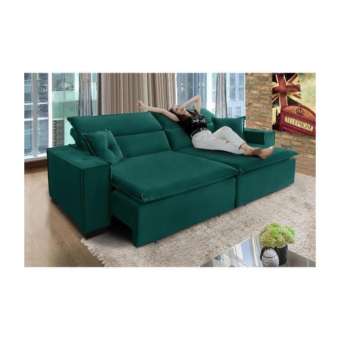 O sofá retrátil tem assento ajustável, isto é, você pode estendê-lo de acordo com a sua necessidade do momento. Caso queira ficar sentado, por exemplo, basta deixá-lo fechado. Agora, se desejar deitar ou esticar as pernas, é só fazer ajustes no assento. Prático, não?