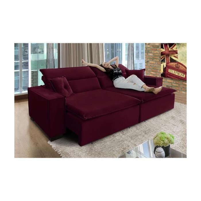 Sofá Londres 3.00m Retrátil e Reclinável Pillow Top - Vinho Vinho