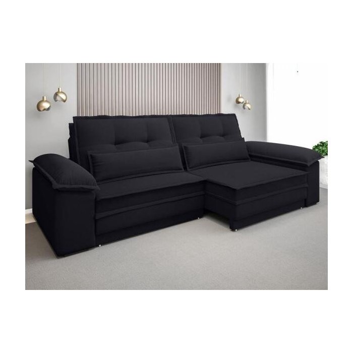 Sofá Luxor 2,50M Assento com Braço Retrátil e Reclinável Velosuede Preto