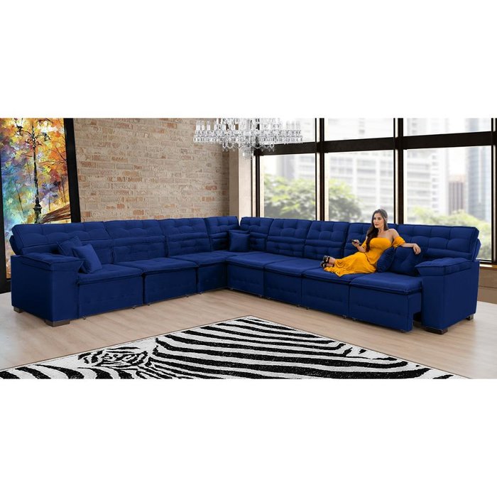 Sofá Magno 3.77x4.57m de Canto, Retrátil e Reclinável - Azul