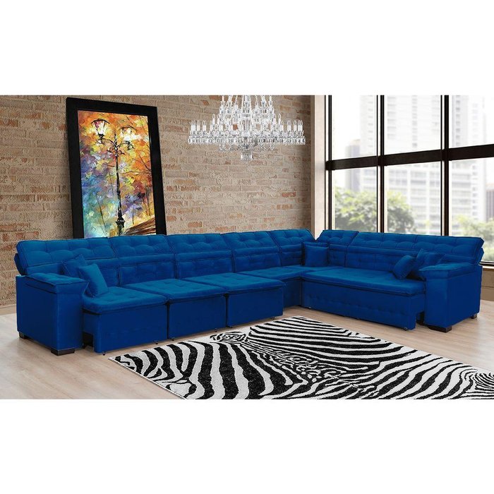 Sofá Magno 4.57x2.57m De Canto, Retrátil E Reclinável - Azul
