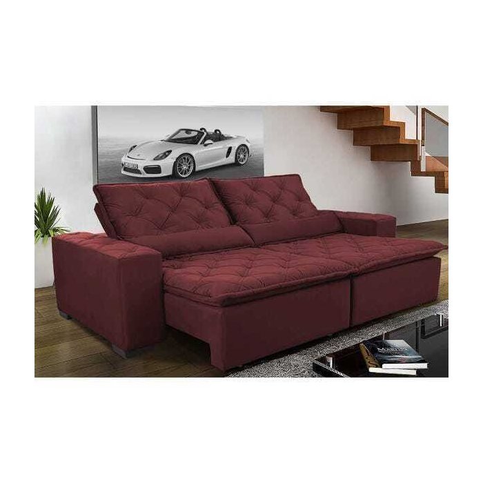 Sofá Magnum 2.42M Retrátil e Reclinável com Molas No Assento Tecido Suede Vinho