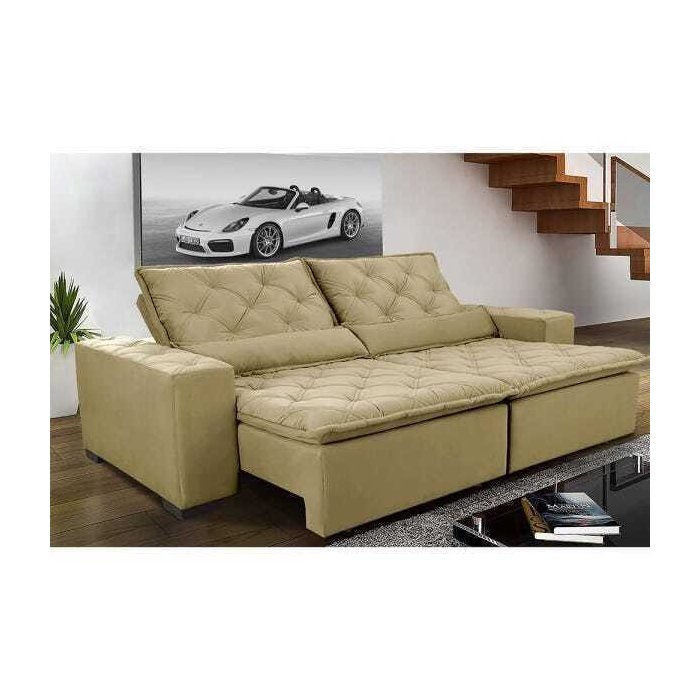 Sofá Magnum 2,82M Retrátil e Reclinável com Molas No Assento Tecido Suede Bege