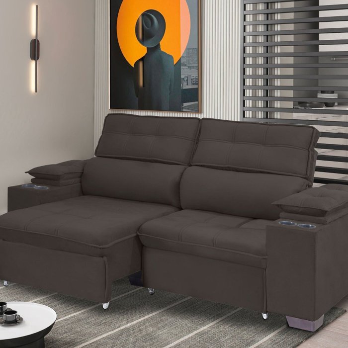 Sofá Manaus 230cm Retrátil e Reclinável Chocolate