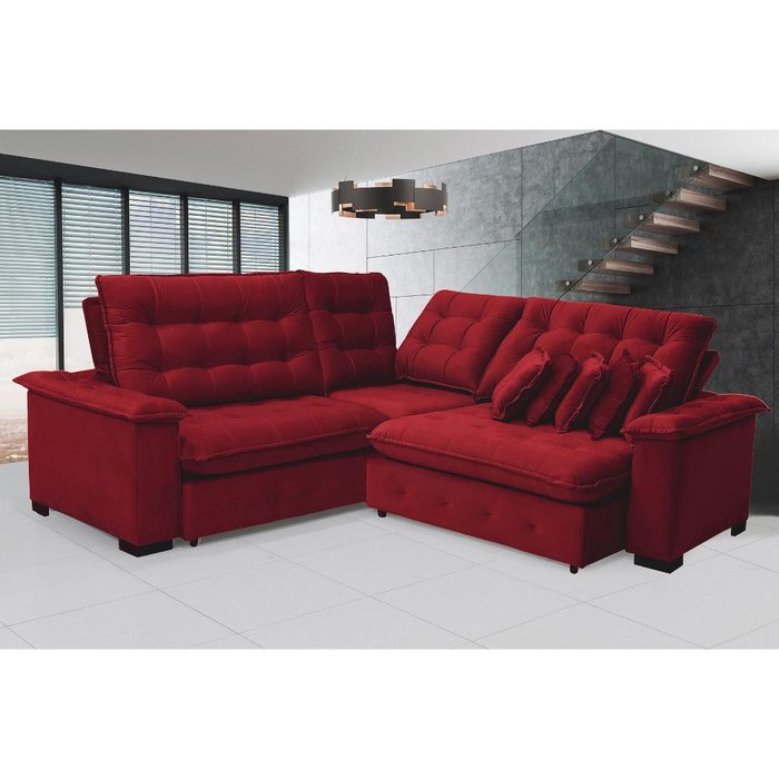 Sofá Manchester 2.63x2.63m de Canto, Retrátil e Reclinável - Vinho