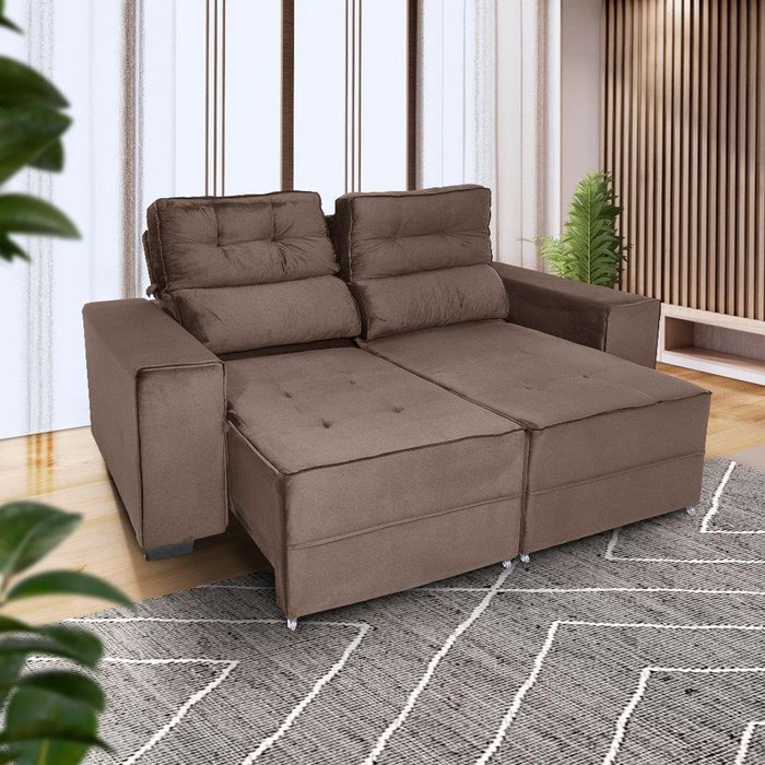 Sofá Marrom Escuro 2m Retrátil e Reclinável