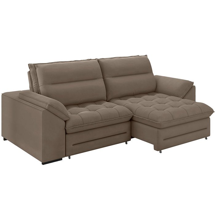 Seus assentos, fabricados com espuma D28, são extensivos e retráteis, encosto articulado em até 3 posições, um recurso que proporciona mais comodidade na hora do descaso. Seus braços são largos e aconchegantes, pois além de serem almofadados, são levemente reclinados, um detalhe que proporciona melhor comodidade. Para completar, ele possui revestimento em veludo, tecido suave e agradável ao toque que deixa o estofado mais acolhedor.