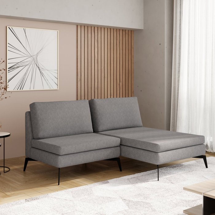 Sofá Modular 2 Lugares com Chaise 150cm Calla CabeCasa MadeiraOriginals Prata Mescla