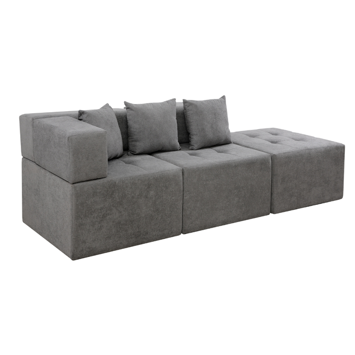 Sofá Modular 2 Lugares com Puff Taiti Vivaro Decor Boucle Cinza