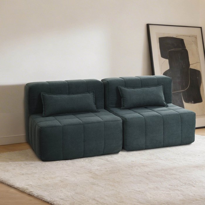 Sofá Modular 2 Lugares Easybox Cabecasa Madeiraoriginals Cotelê Verde Escuro