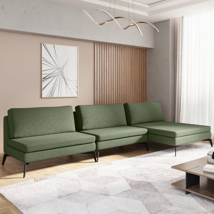 Sofá Modular 3 Lugares com Chaise 300cm Calla CabeCasa MadeiraOriginals Verde