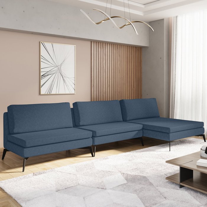 Sofá Modular 3 Lugares com Chaise 300cm Calla CabeCasa MadeiraOriginals Azul