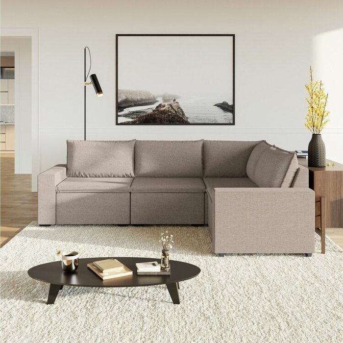 Sofá Modular de Canto 4 Módulos Zen CabeCasa MadeiraOriginals Marrom