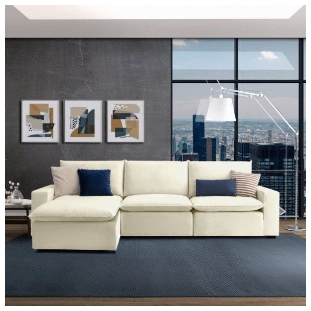 Sofá Modular Hug 6 Lugares 375cm com 1 Puff em Linho CabeCasa MadeiraOriginals Off White