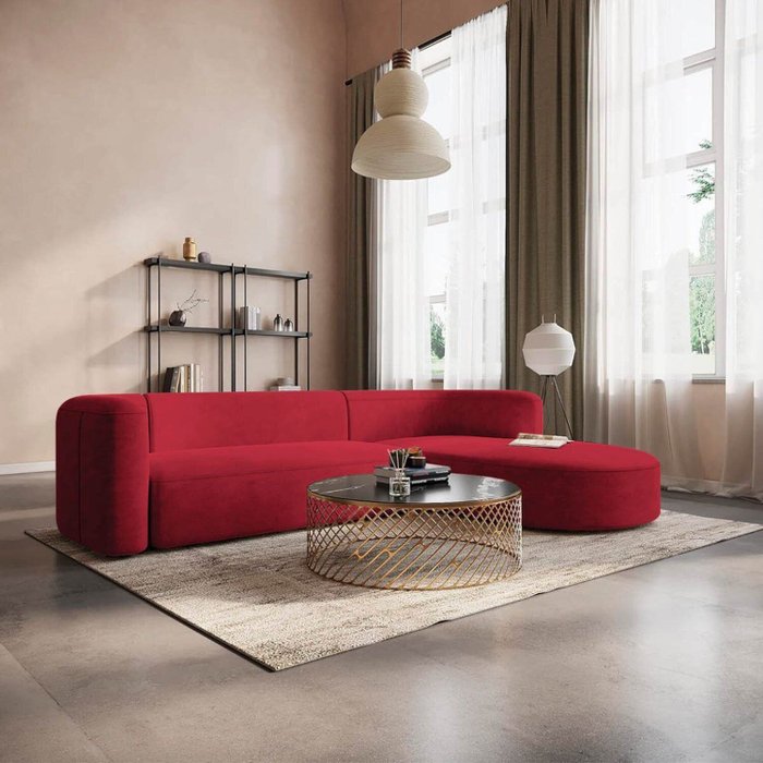 Sofá Modular Sala de Estar Decoração Luxo 265cm Lado Esquerdo Suede Celinne Luxuoso Vermelho
