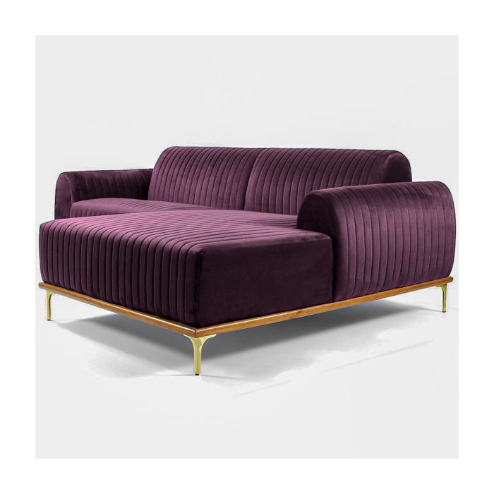 Sofá Molino 3 Lugares 230cm Chaise Esquerdo Pés Gold Veludo Roxo - Nexta Casa