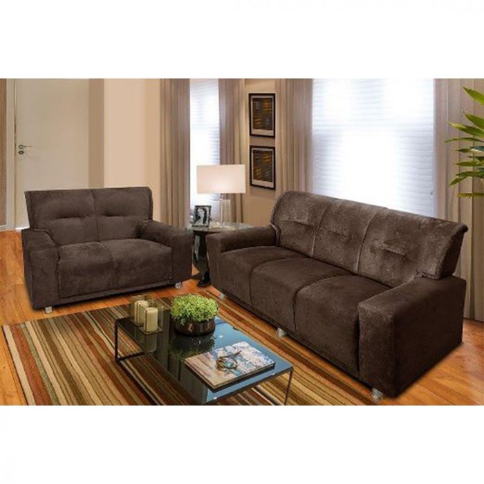 Sofá Montana 3 e 2 Lugares Estofados Umuarama Marrom