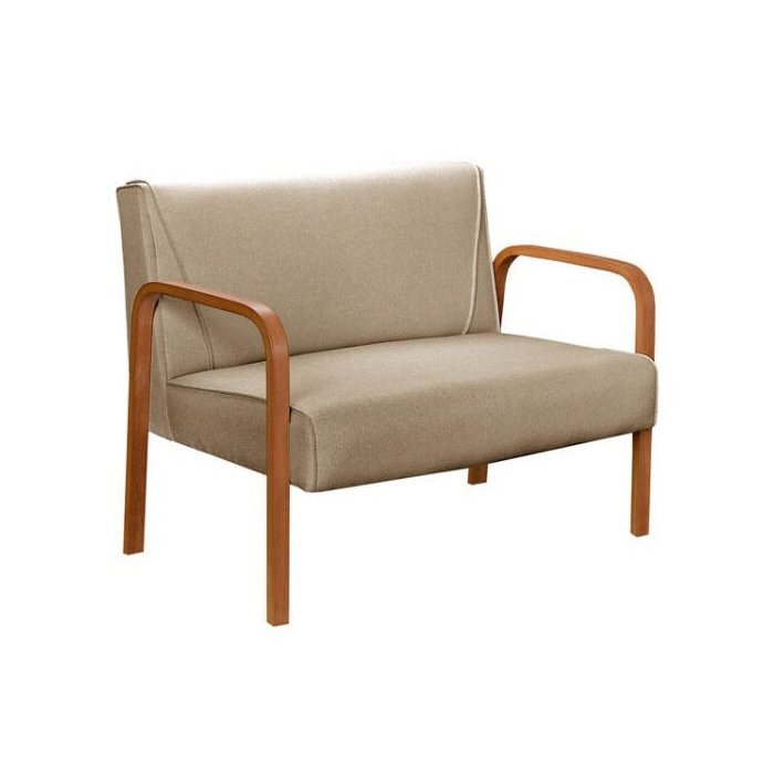 Sofá Namoradeira 2 Lugares Anita Braço De Madeira - Linho Marrom