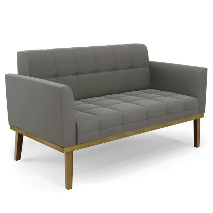 Sofá Namoradeira Base Madeira Castanho Ana Suede Grafite - Ibiza