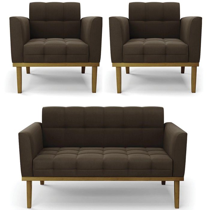 O Sofá Namoradeira e 2 Poltronas Base Madeira Castanho Ana Suede Marrom, da Ibiza é o conjunto ideal para quem busca beleza, conforto e versatilidade. Você pode usar na sua Sala De Estar, recepção ou qualquer outro ambiente que desejar.