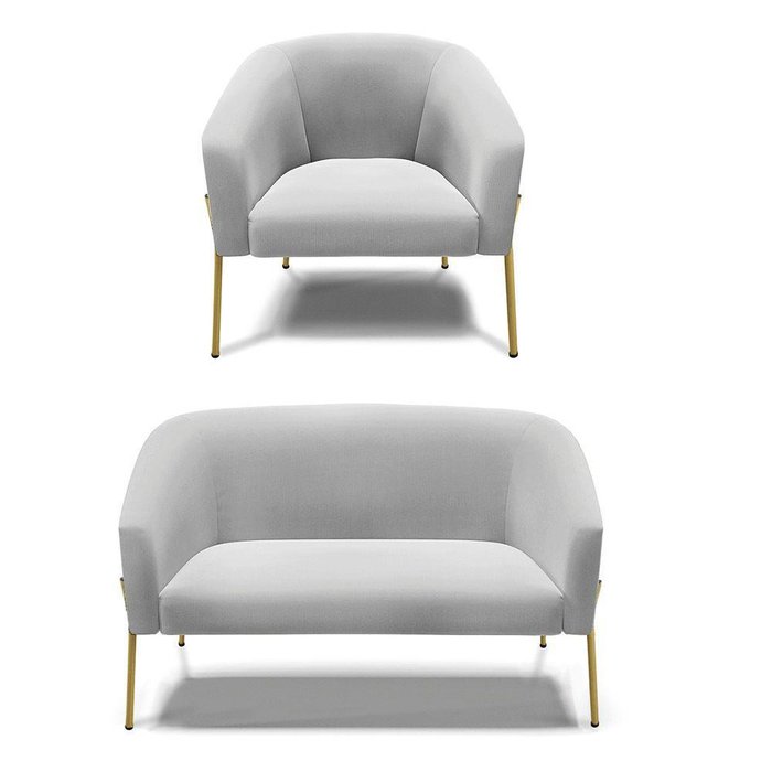 Sofá Namoradeira e Poltrona Pé de Ferro Dourado Stella Suede Cinza D03 - D'rossi