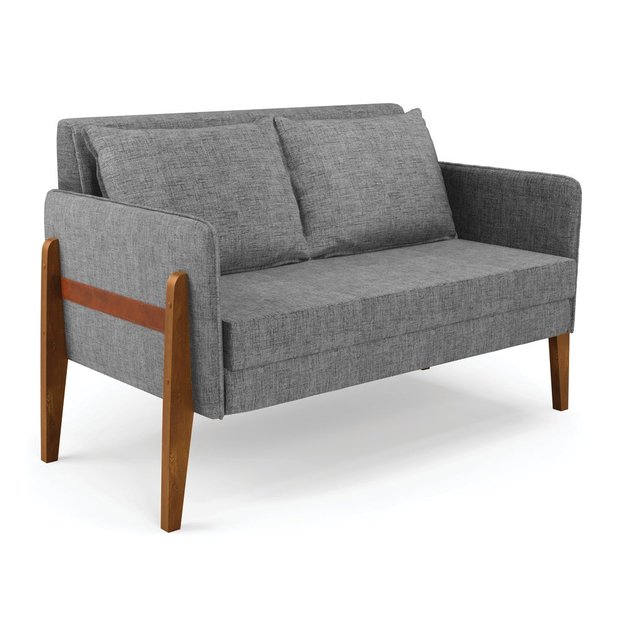 Sofá Namoradeira Lana Linho Grafite A26 Base de Madeira - D’Rossi Grafite