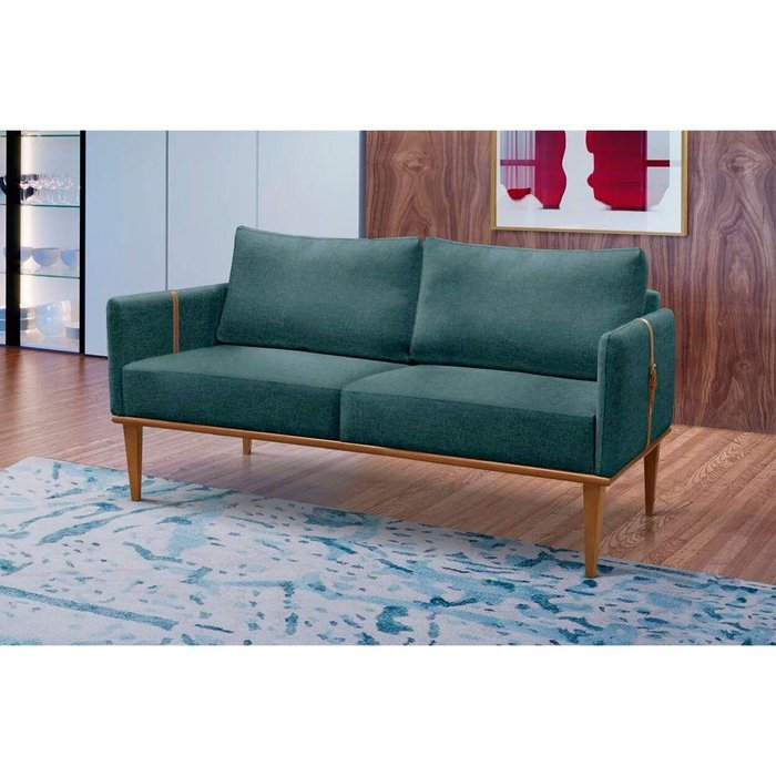 Sofá Namoradeira Milla Base Em Madeira Maciça Castellar Móbile Azul