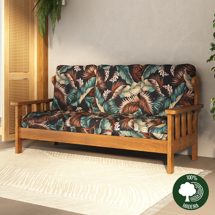 Sofá Nathalia 3 lugares c/ almofadas - 100% madeira maciça