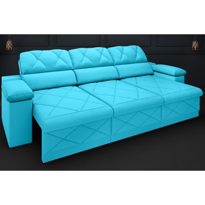 Sofá New Ripley 2,05M Assento Retrátil e Reclinável Velosuede Turquesa - NetSofás