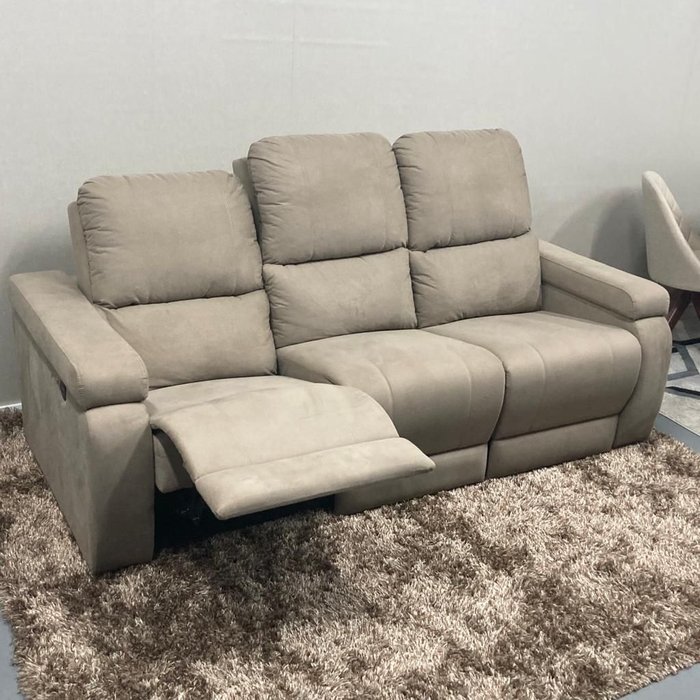 Sofá Novara 3 Módulos Reclináveis Elétrico e Entradas Usb Linho Mesclado Bege e Cinza M37