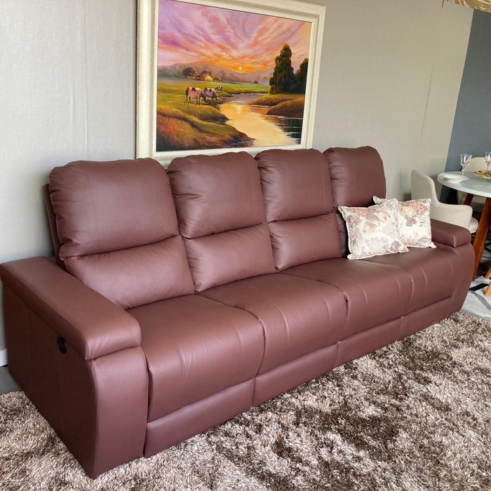 Sofá Novara 4 Lugares Reclináveis 100% Couro Elétrico Touch Screen D'confort Design Couro Creme 03