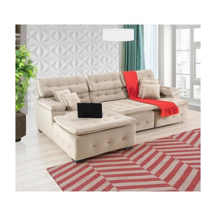 Sofá Orlando 2.80x1.90m com Chaise, Retrátil e Reclinável - Bege