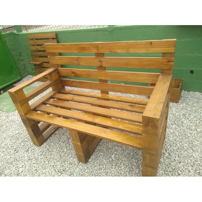 Sofá Pallet com apoio de braço tratado, produzido com madeiras reflorestadas novas secas e aparelhadas e tratadas em autoclave.