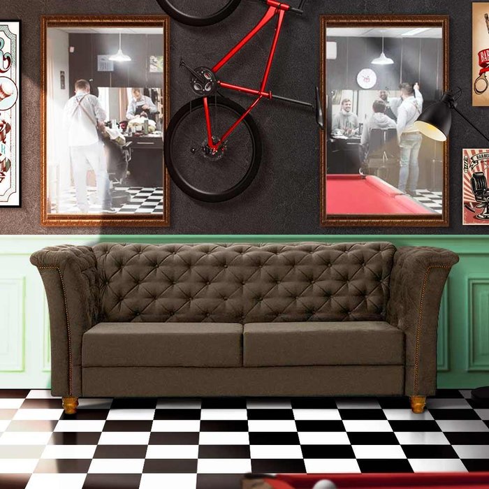 Sofá Para Barbearia 4 Lugares 2,60M Chesterfield Sued Marrom Shop JM