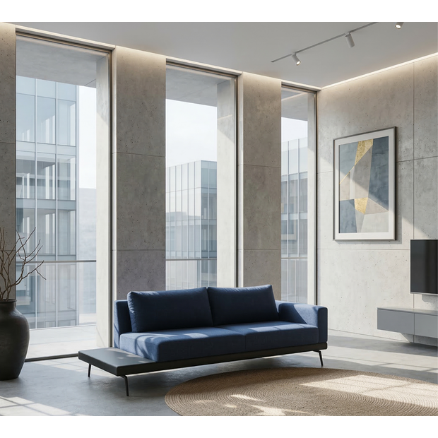 Modelo de linhas simples para um ambiente residencial ou corporativo. Sua mescla de materiais usando tecido, courissimo e metal completam a versatilidade do modelo. Sofá confeccionado em eucalipto de reflorestamento tipo grandis tratado e seco entre 12 e 14 graus de umidade, Almofadas de assento fixas em espuma d33 com toque de 2 cm de espuma hipersoft e encosto solto o em espuma D26 soft com toque de 3cm de hipersot, molejo feito por percinta italiana aplicada mecanicamente com proteção da espuma por Antiderrapante. Espumas aplicadas homolagads e seladas pelo INmetro. Pés em Aço Carbono com pintura epoxi.