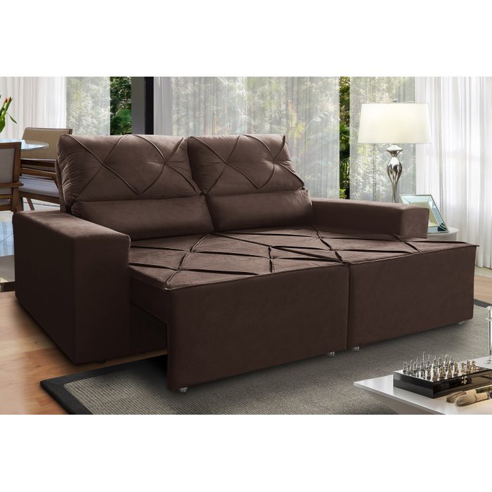 Assento: O assento é feito com espumas D20, que são firmes e resistentes, garantindo o suporte ideal para o seu corpo e a durabilidade do seu sofá. Além disso, o assento é retrátil, permitindo que você estenda o sofá e tenha mais espaço;