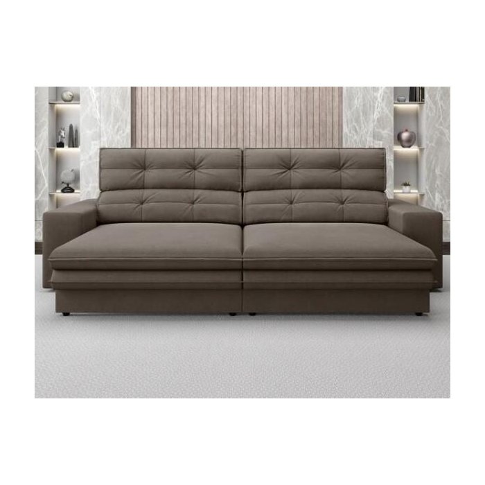 Sofá Pegasus 2,30M Assento Retrátil e Reclinável Velosuede Marrom - NetSofás