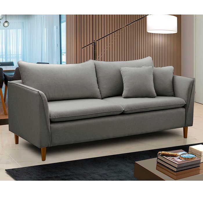 Este sofá com revestimento 100% poliéster e aspecto linho está disponível em várias cores. Com assento fixo, pillow top de espuma D26 e estrutura robusta com mola bonnel e percintas elásticas italianas, oferece suporte e suavidade excepcionais. Feito com madeira de eucalipto sustentável, tem pés removíveis e encosto com almofadas de fibra de silicone. A costura detalhada e as almofadas decorativas completam o visual.