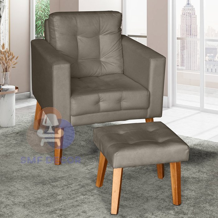 Poltrona Glamour Dubai com pés em Madeira e com Puff Conforto e Sofisticação em Cada Detalhe