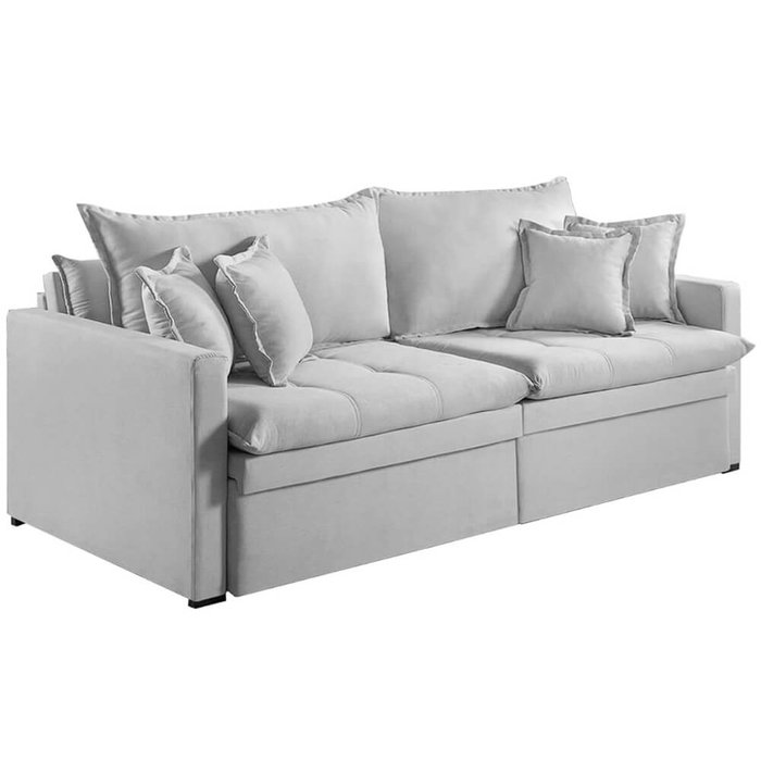 Sofá Ravena 220cm Retrátil com Baú e Almofadas Soltas 4 Lugares Tecido Linho Arpan Cor Cinza