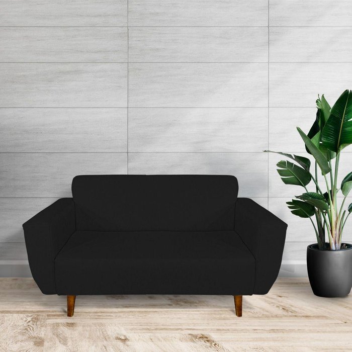 Sofá Ravena Base Retrô 2 Lugares Suede Preto Premium - Cor: Preto