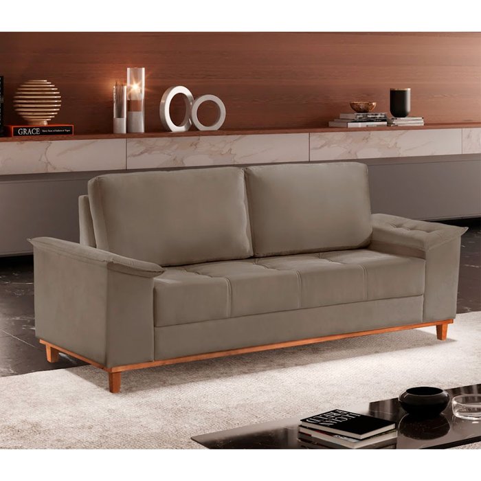 Sofá Ravena Veludo 03 Lugares D28 Meu Sofá Online B002 VELUDO CAPUCCINO