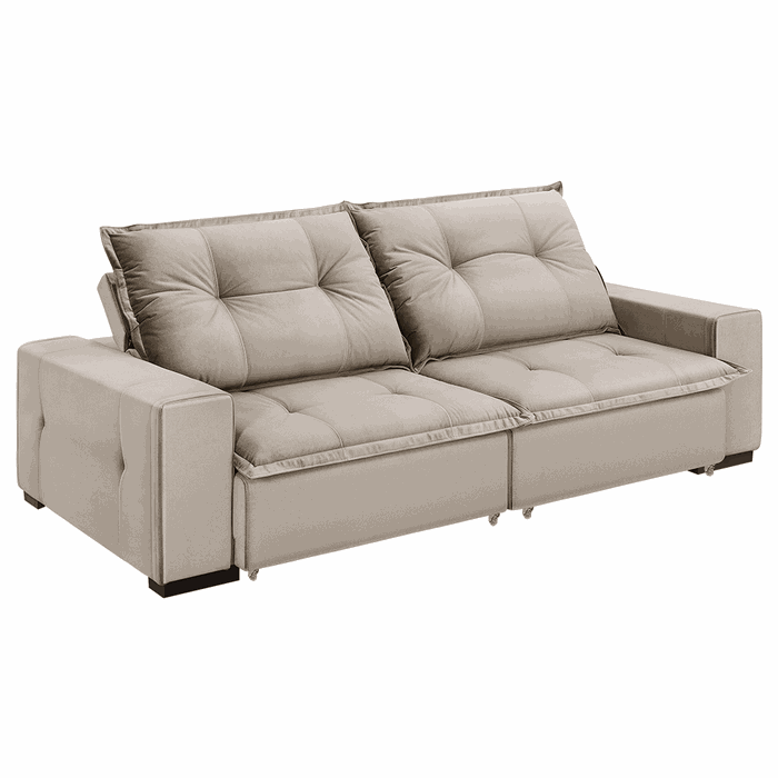 Sofá Recanto 3 Lugares (L:260cm) Retrátil e Reclinável C/ Molas Suede Liso Nude