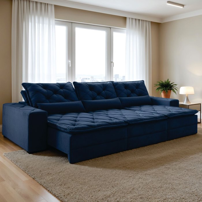 Sofá Reclinável 5 Lugares 320cm Dallas Veludo Azul Marinho