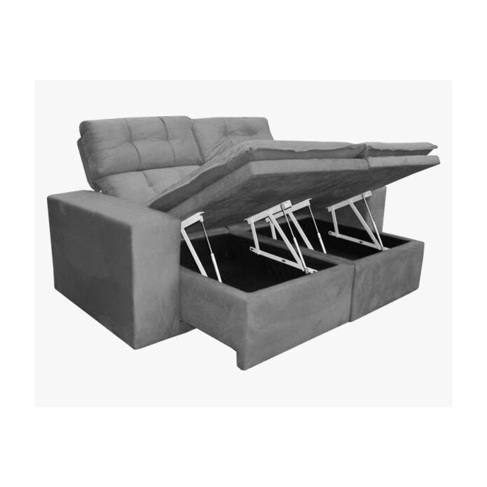 Sofá Reclinável e Retrátil 3 Lugares com Baú Master Confort Suede Animalle Cinza