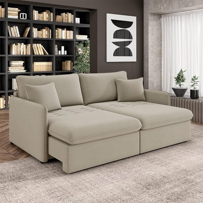 Sofá Reclinável E Retrátil Gandalf Bipartido 234cm Caixa Zero Com Almofadas Veludo Bege G33 - Gran