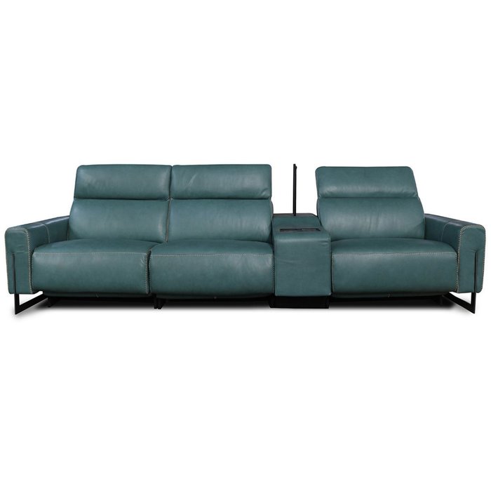 Sofá Reclinável Elétrico de Couro Legend com Itable e Luminária À Direita Couro Turquese - Mempra