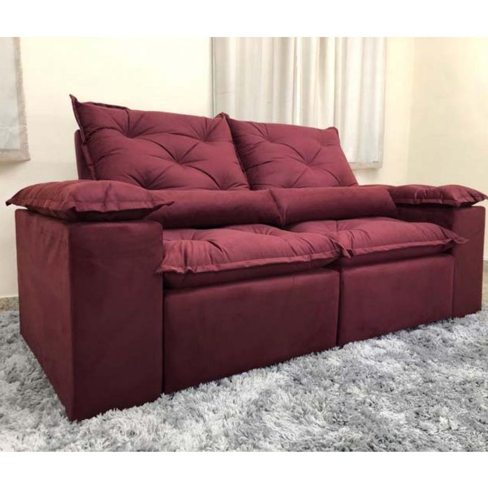Sofá Reclinável Retrátil Confortavel Macio Athenas 2,00m Cor:vinho Rose 19